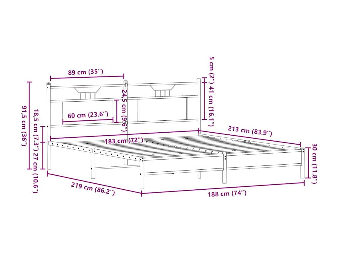 Lit double | Lit adulte | Cadre de lit chêne marron 183x213 cm