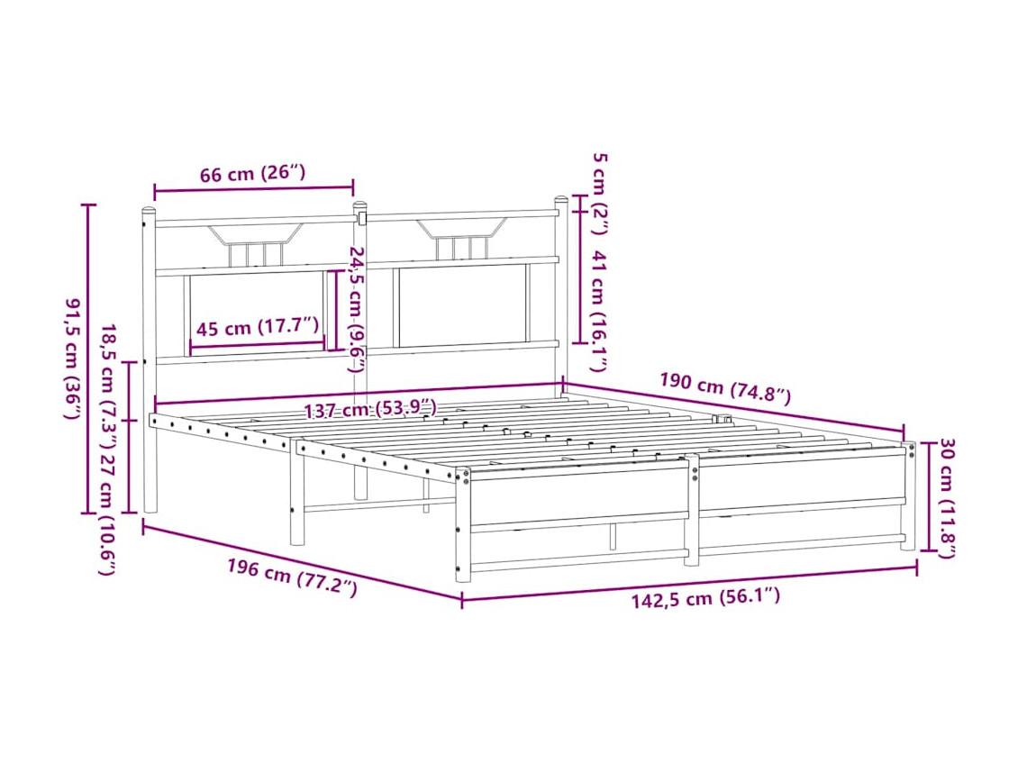 Lit double | Lit adulte | Cadre de lit chêne sonoma 137x190 cm