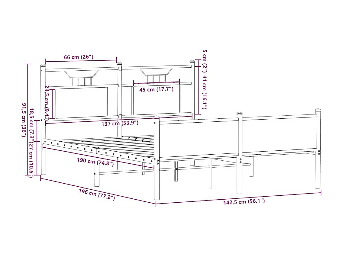 Lit double | Lit adulte | Cadre de lit chêne sonoma 137x190 cm