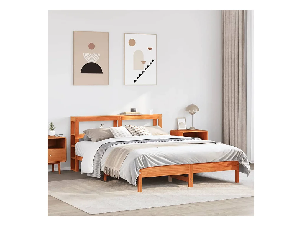 Lit double | Lit adulte | Cadre de lit cire marron 135x190cm bois pin massif