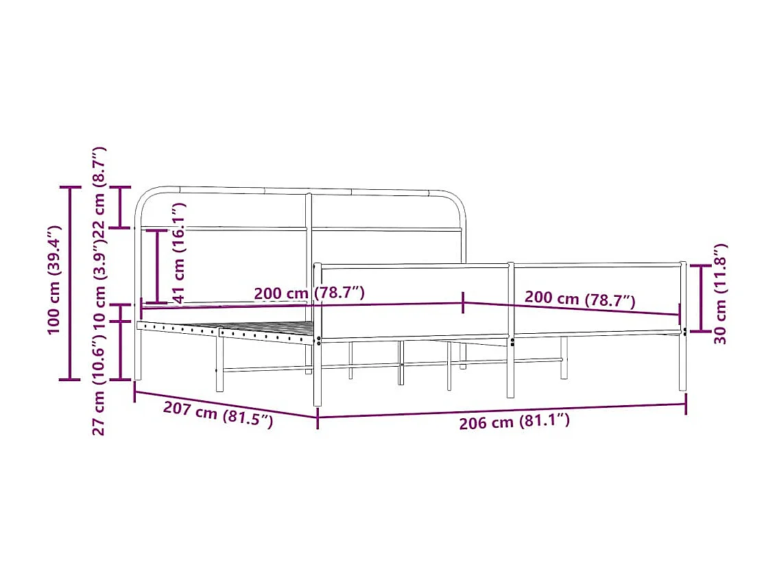Lit double | Lit adulte | Cadre de lit en métal chêne fumé 200x200 cm