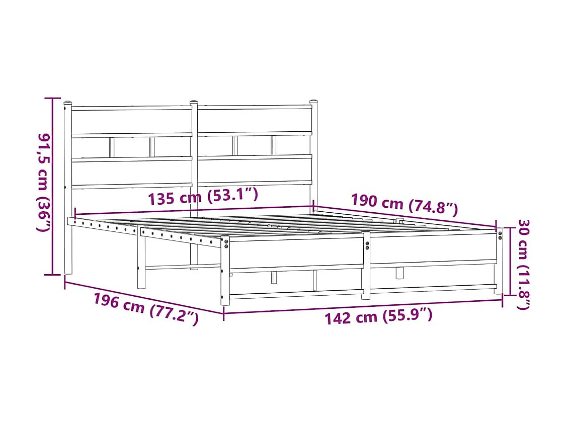 Cadre de lit en métal sans matelas chêne fumé 137x190 cm