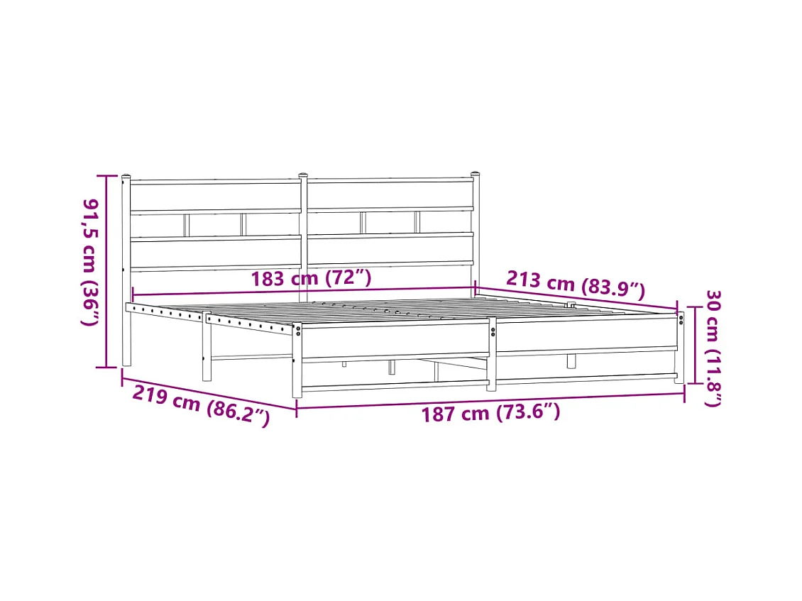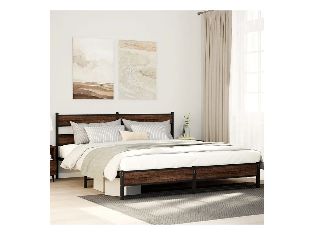 Lit double | Lit adulte | Cadre de lit en métal chêne marron 183x213 cm
