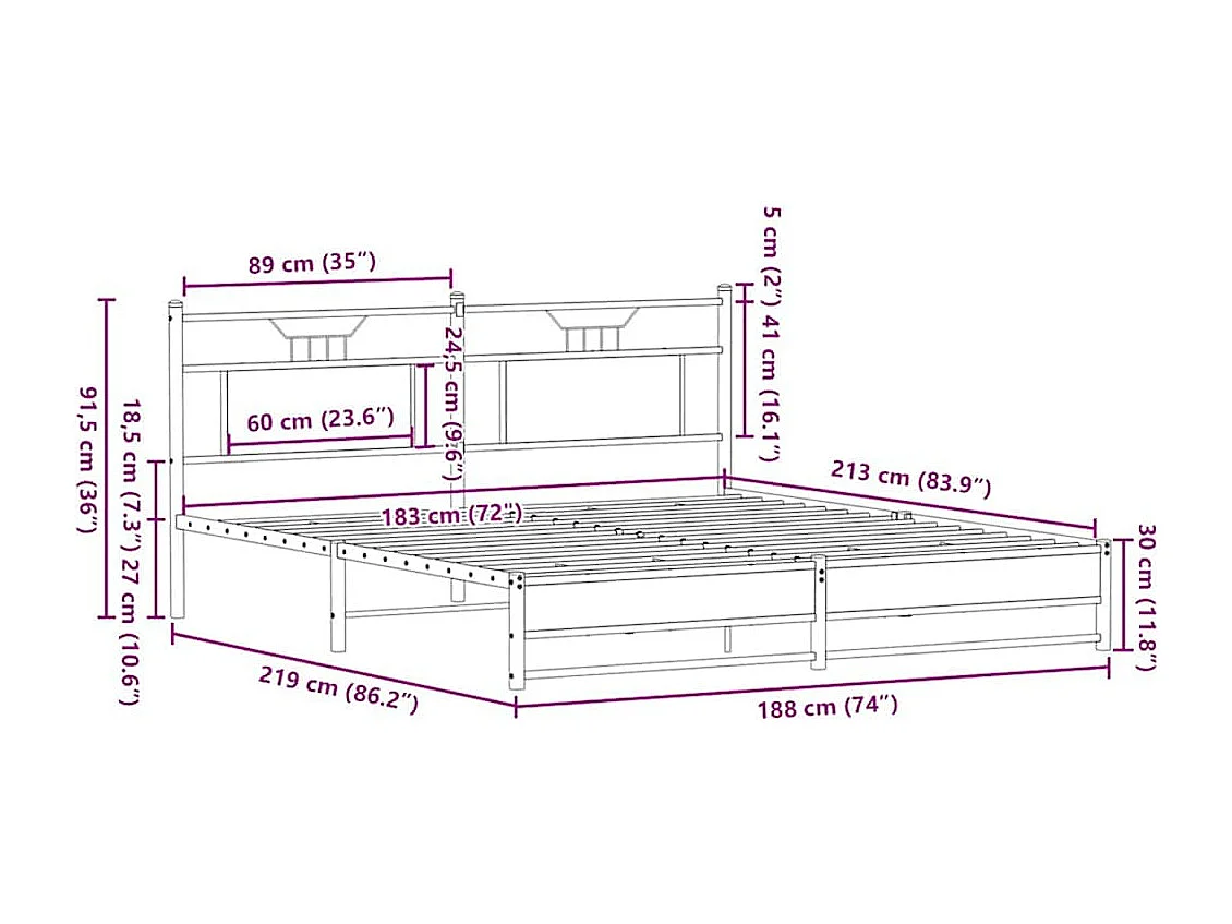 Lit double | Lit adulte | Cadre de lit en métal chêne marron 183x213 cm