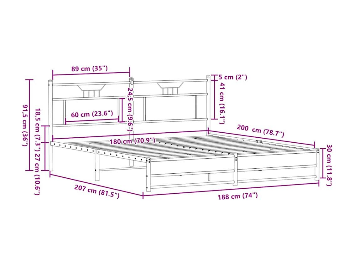 Lit double | Lit adulte | Cadre de lit en métal chêne sonoma 180x200 cm