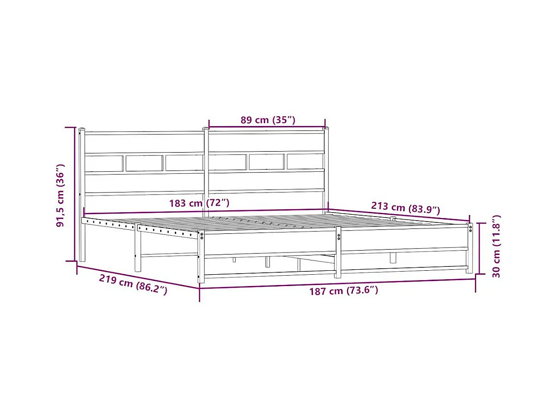 Lit double | Lit adulte | Cadre de lit en métal chêne sonoma 183x213 cm