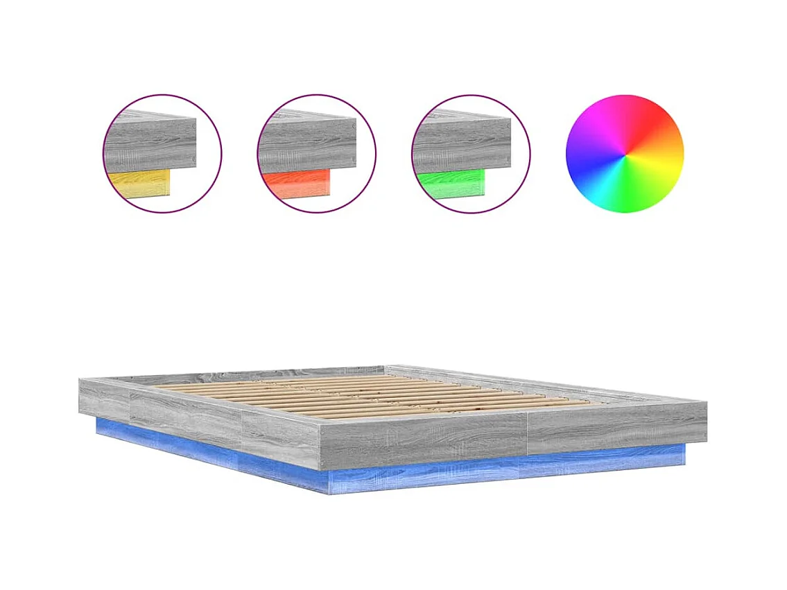 Lit double | Lit adulte | Cadre de lit et lumières LED sonoma gris 140x200cm
