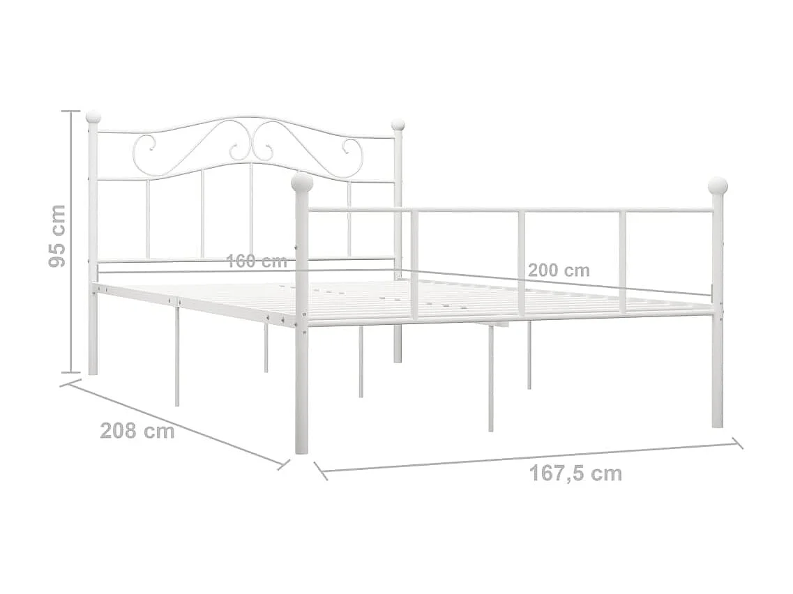 Lit double | Lit adulte | Cadre de lit et tête de lit blanc métal 160x200 cm