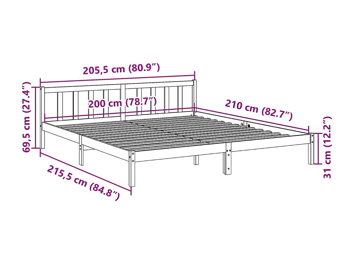 Lit double | Lit adulte | Cadre de lit extra long 200x210 cm bois massif pin