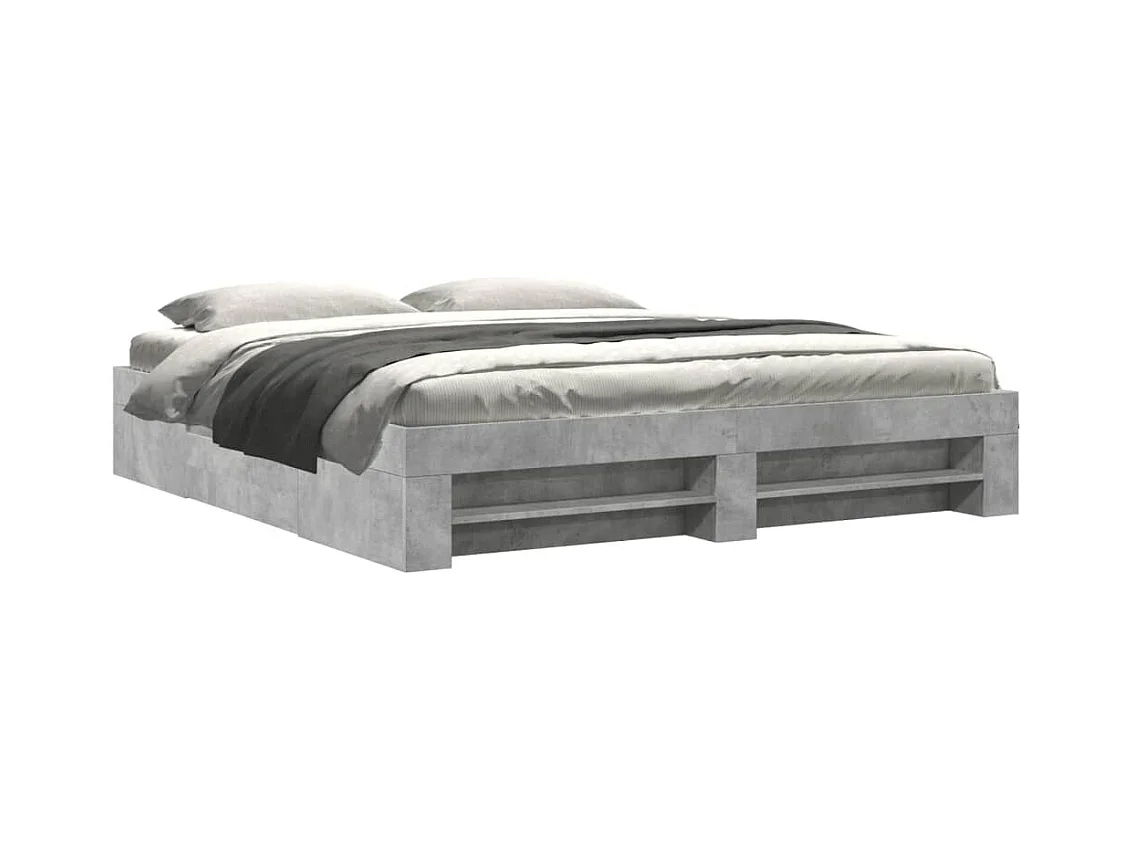 Lit double | Lit adulte | Cadre de lit gris béton 200x200 cm bois ingénierie