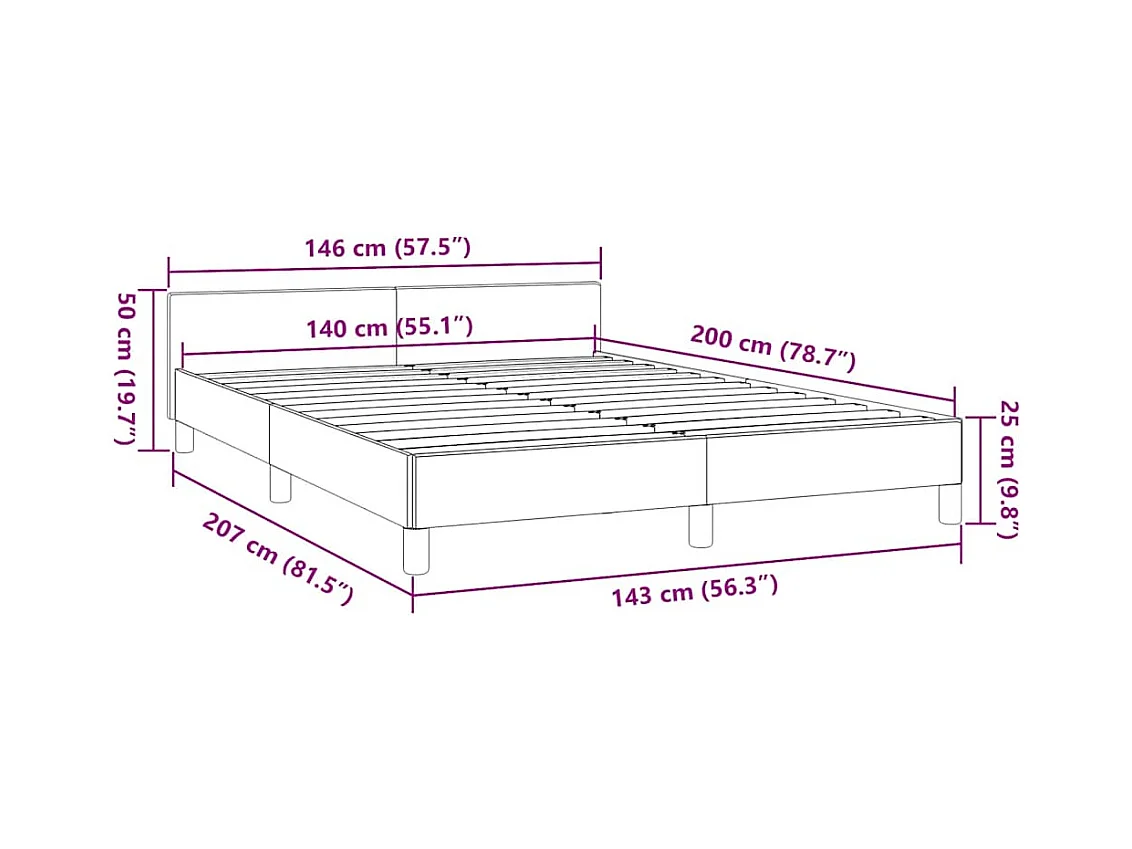 Lit double | Lit adulte | Cadre de lit gris foncé 140x200 cm tissu