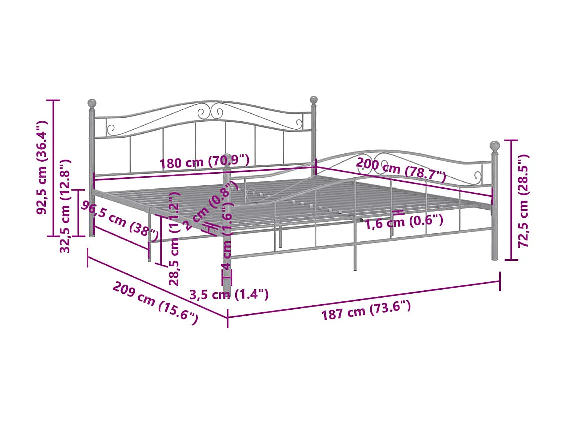 Lit double | Lit adulte | Cadre de lit Gris Métal 180x200 cm