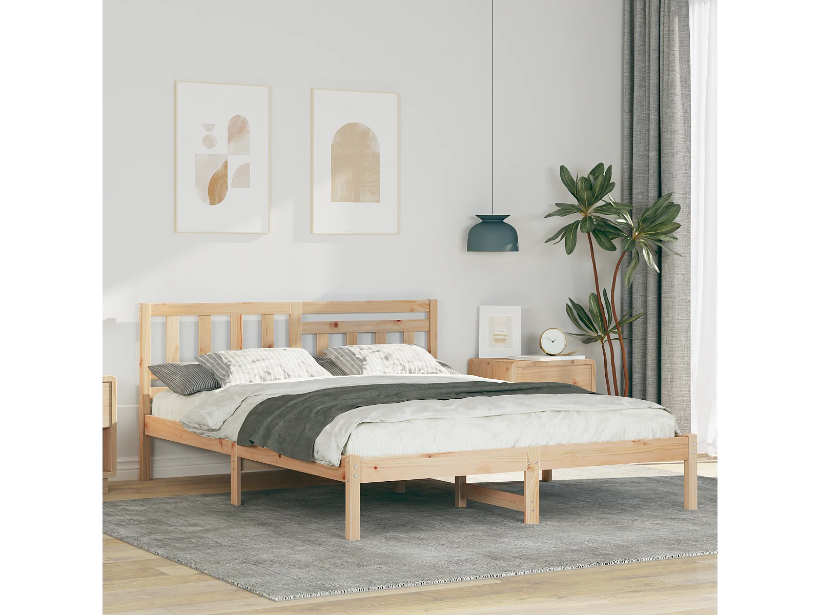 Lit double | Lit adulte | Cadre de lit Marron 140x200 cm Bois massif en pin