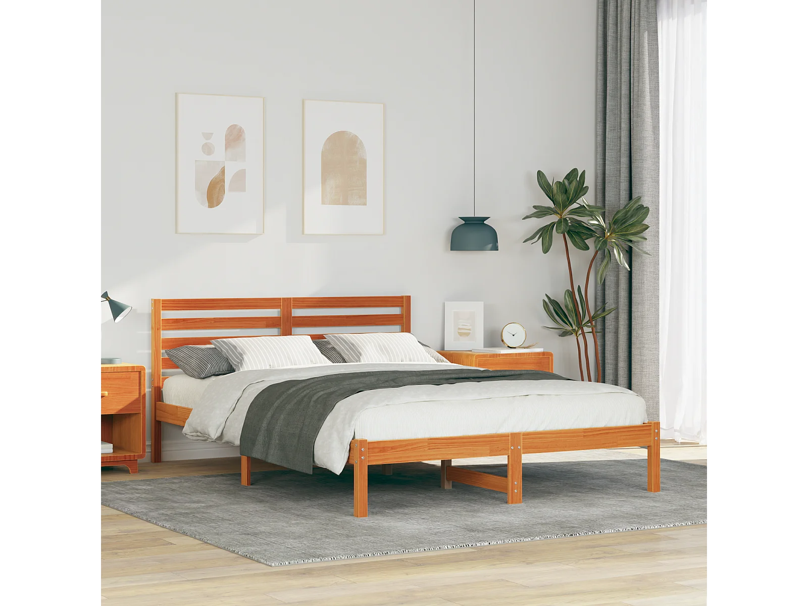 Lit double | Lit adulte | Cadre de lit Marron cire 140x220 cm Bois massif en pin