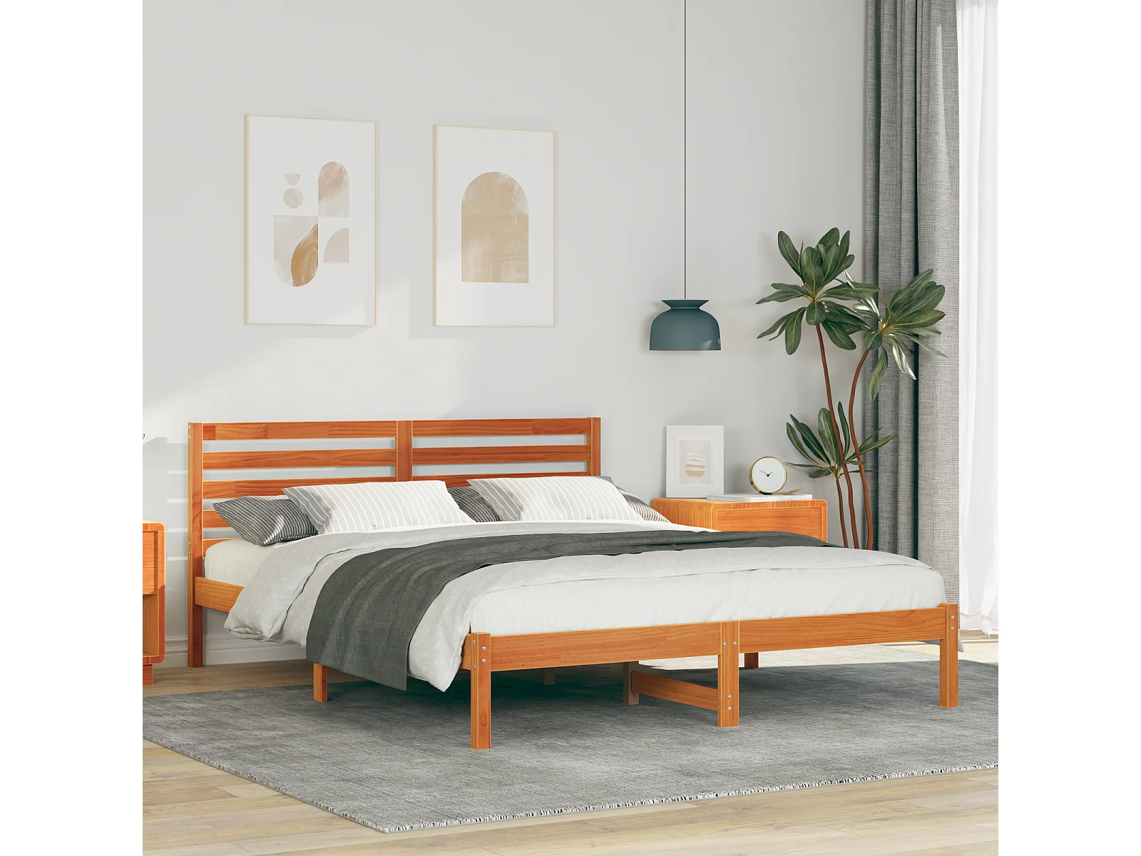 Lit double | Lit adulte | Cadre de lit Marron cire 150x200 cm Bois massif en pin