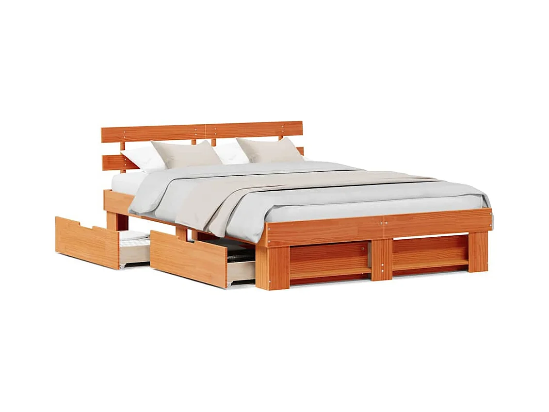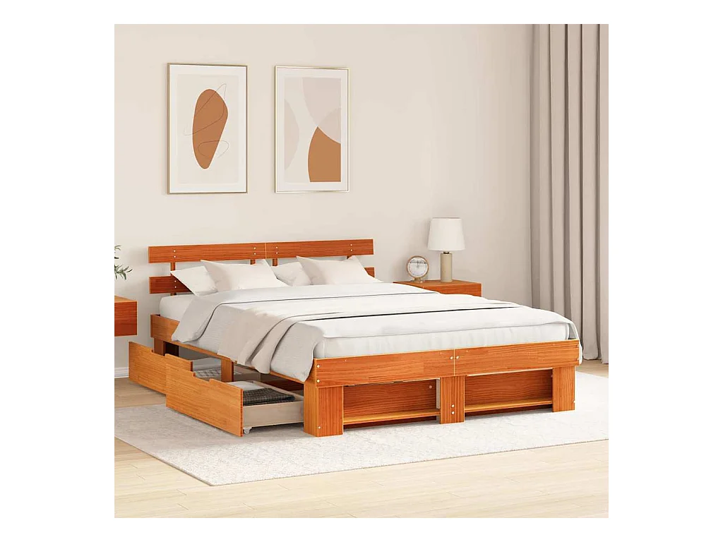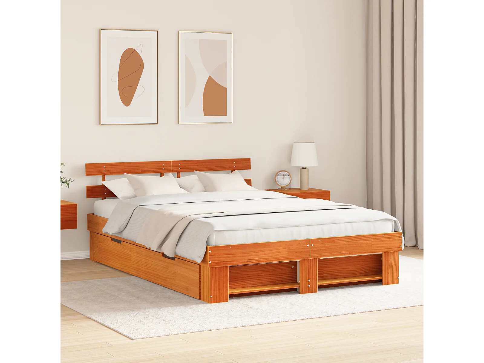 Lit double | Lit adulte | Cadre de lit Marron cire 160x200 cm Bois massif en pin