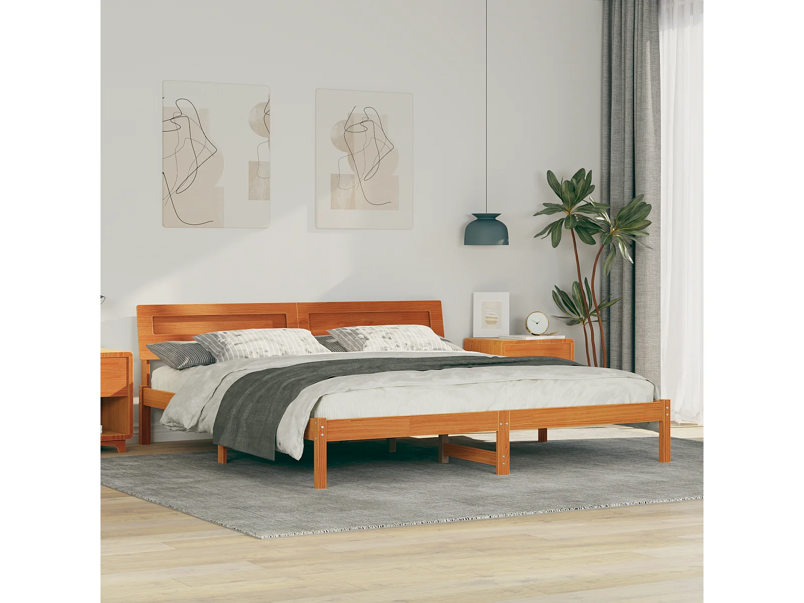 Lit double | Lit adulte | Cadre de lit Marron cire 180x200 cm Bois massif en pin