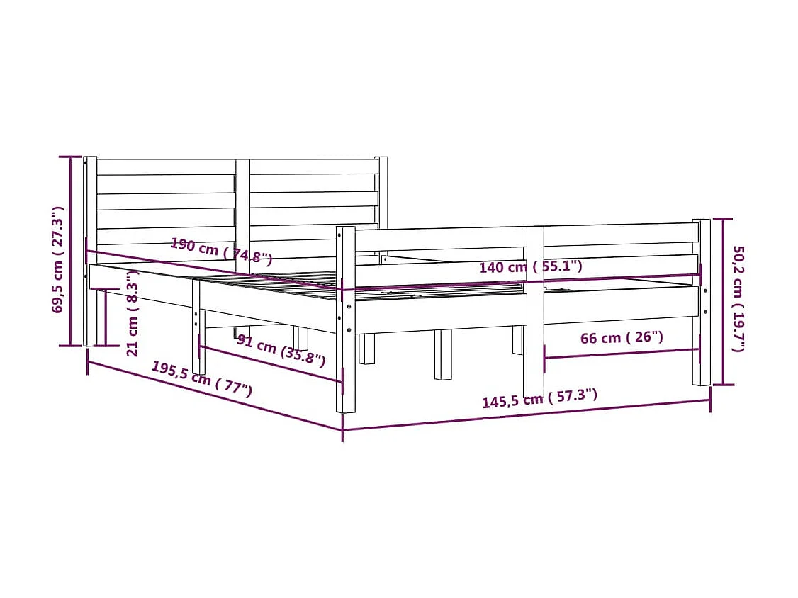 Lit double | Lit adulte | Cadre de lit marron miel bois massif 140x190 cm