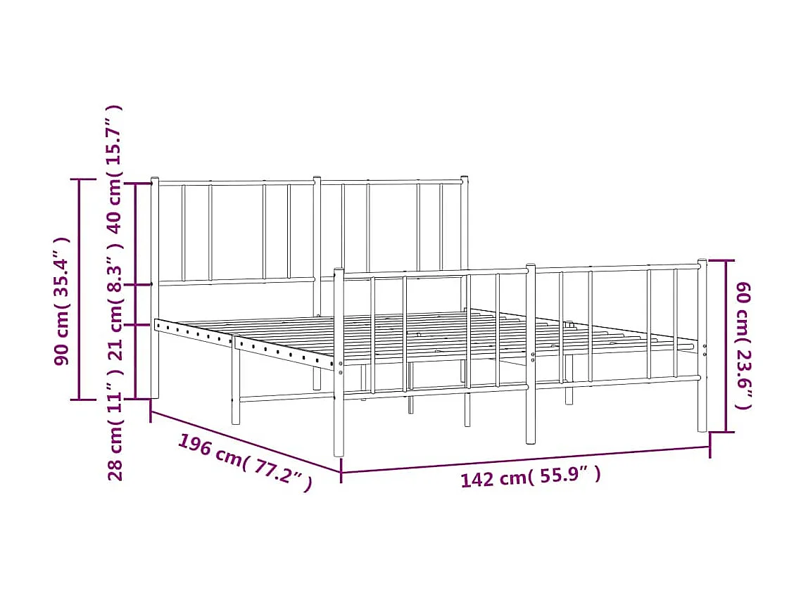 Lit double | Lit adulte | Cadre de lit métal noir 135x190 cm