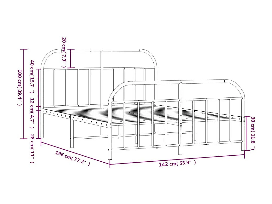 Lit double | Lit adulte | Cadre de lit métal avec pied de lit noir 135x190cm