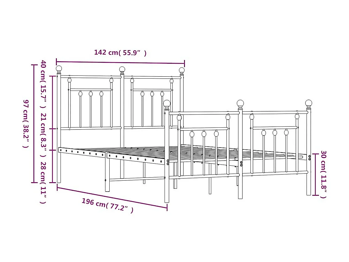 Lit double | Lit adulte | Cadre de lit métal avec pied de lit noir 135x190cm