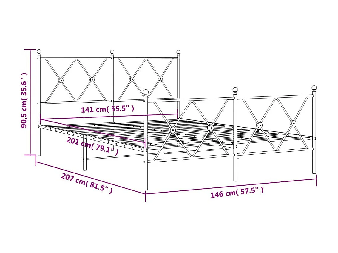 Lit double | Lit adulte | Cadre de lit métal noir 140x200 cm