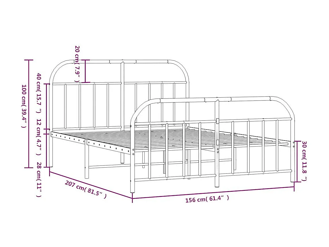Lit double | Lit adulte | Cadre de lit métal avec pied de lit noir 150x200cm