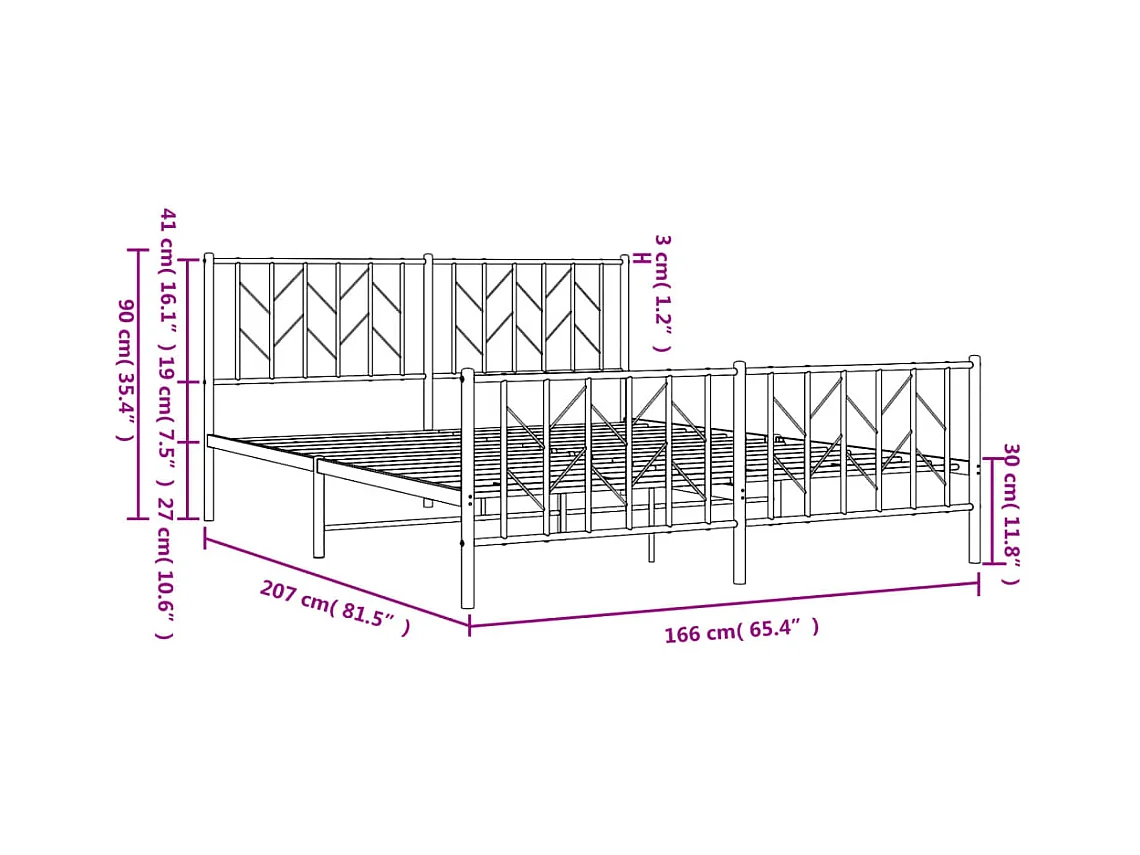 Lit double | Lit adulte | Cadre de lit métal avec pied de lit noir 160x200cm