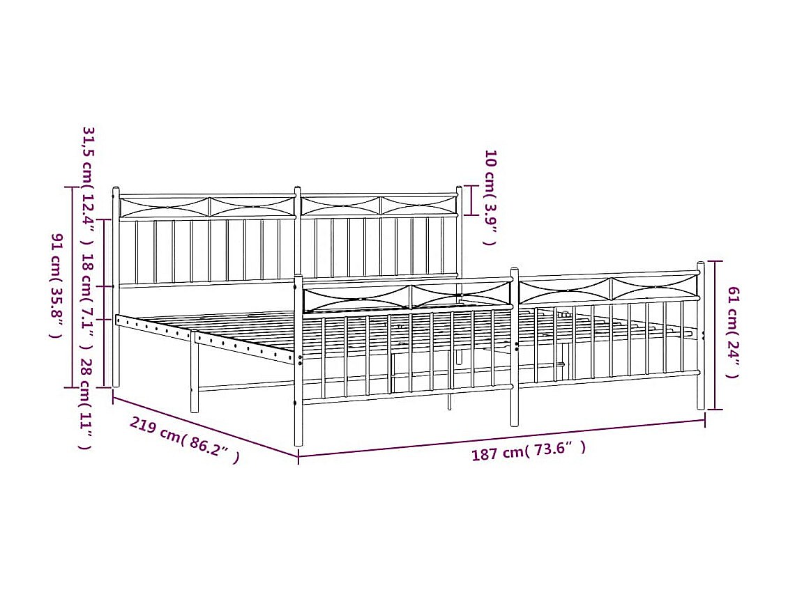 Lit double | Lit adulte | Cadre de lit métal avec pied de lit noir 183x213cm