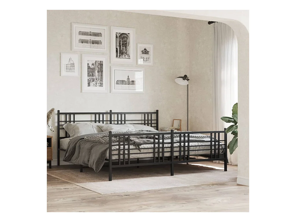 Cadre de lit métal avec tête de lit/pied de lit noir 180x200 cm