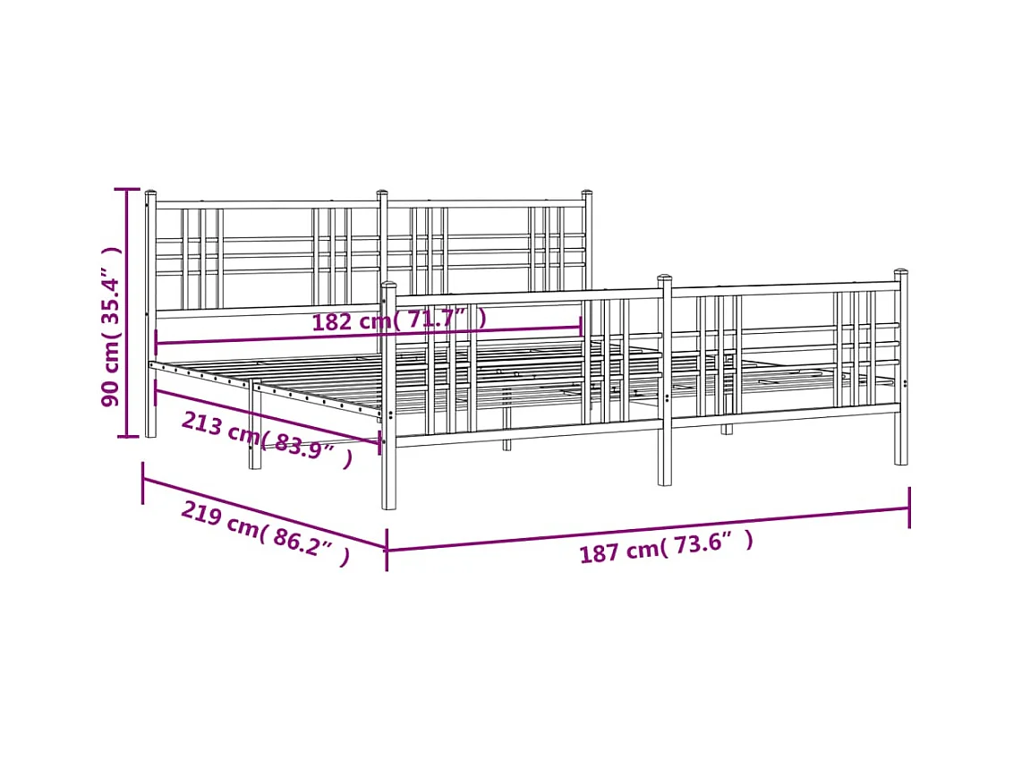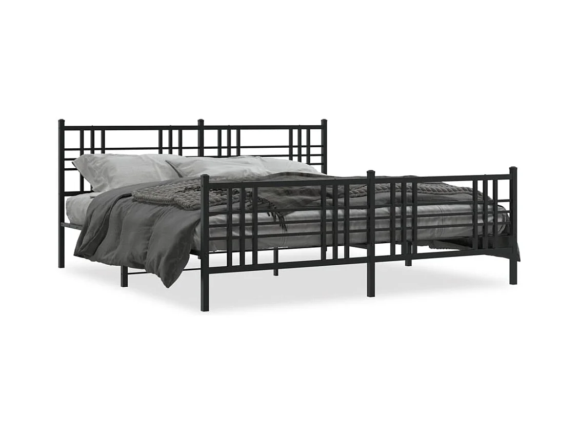 Cadre de lit métal avec tête de lit-pied de lit noir 183x213