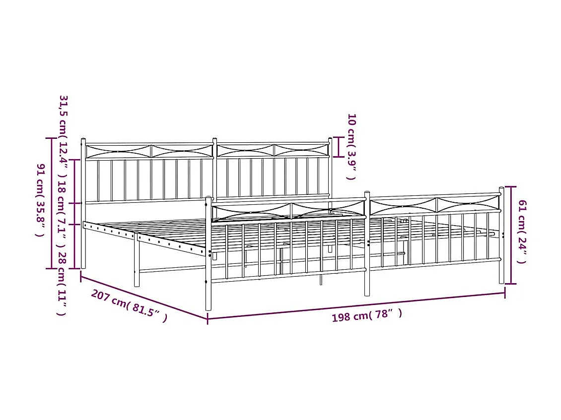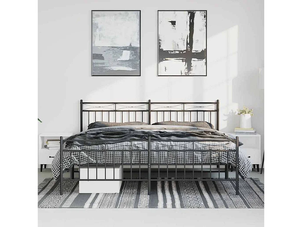 Lit double | Lit adulte | Cadre de lit métal avec pied de lit noir 193x203cm