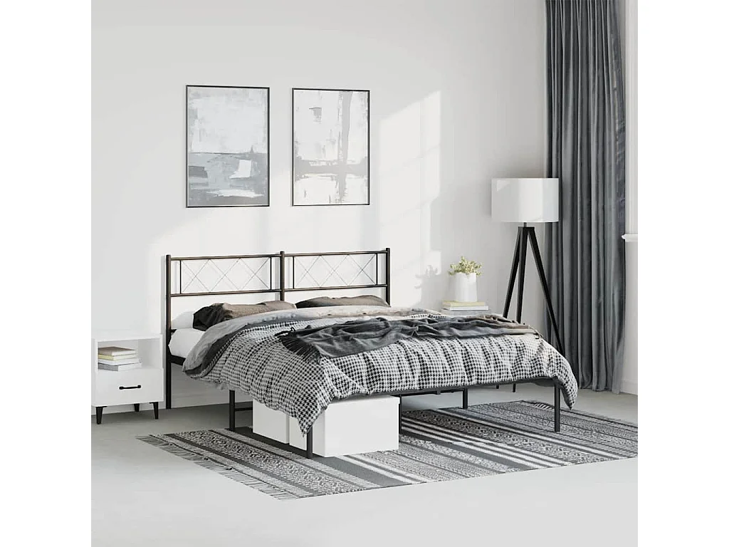 Lit double | Lit adulte | Cadre de lit métal avec tête de lit noir 135x190cm
