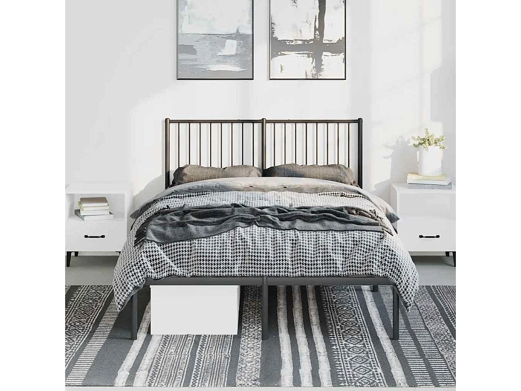 Lit double | Lit adulte | Cadre de lit métal avec tête de lit noir 135x190cm