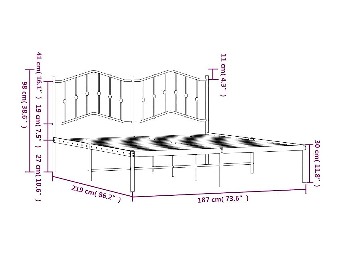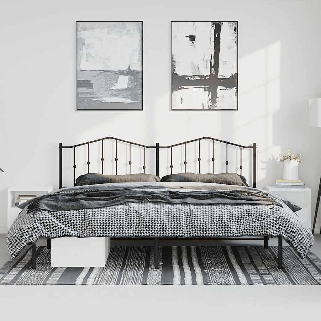 Cadre de lit métal avec tête de lit/pied de lit noir 183x203 cm