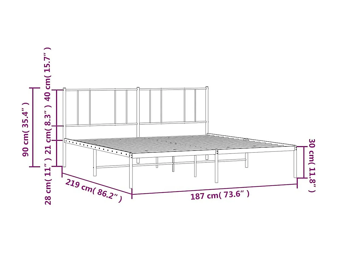 Lit double | Lit adulte | Cadre de lit métal avec tête de lit noir 183x213cm