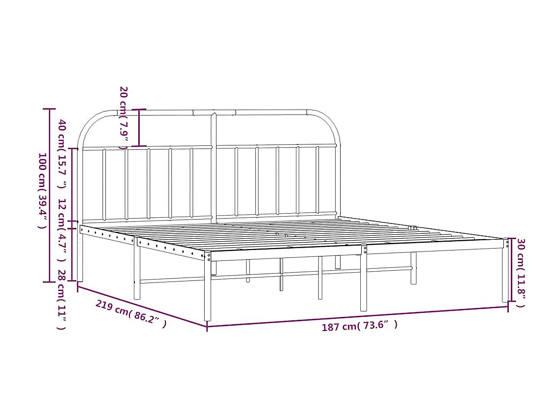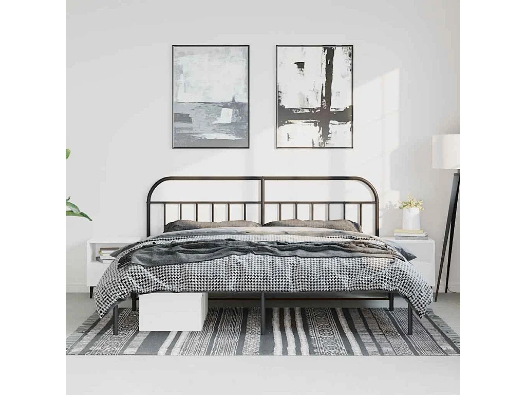 Lit double | Lit adulte | Cadre de lit métal avec tête de lit noir 183x213cm
