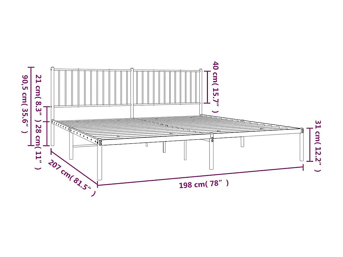 Lit double | Lit adulte | Cadre de lit métal avec tête de lit noir 193x203cm
