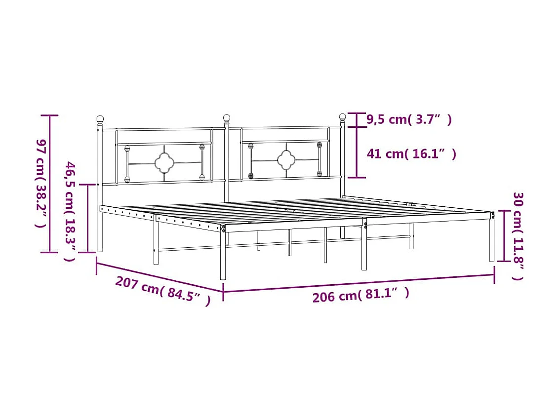 Lit double | Lit adulte | Cadre de lit métal avec tête de lit noir 200x200cm