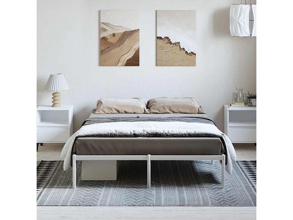 Lit double | Lit adulte | Cadre de lit métal et pied de lit blanc 137x190 cm