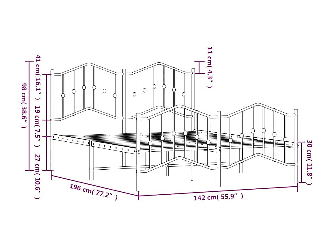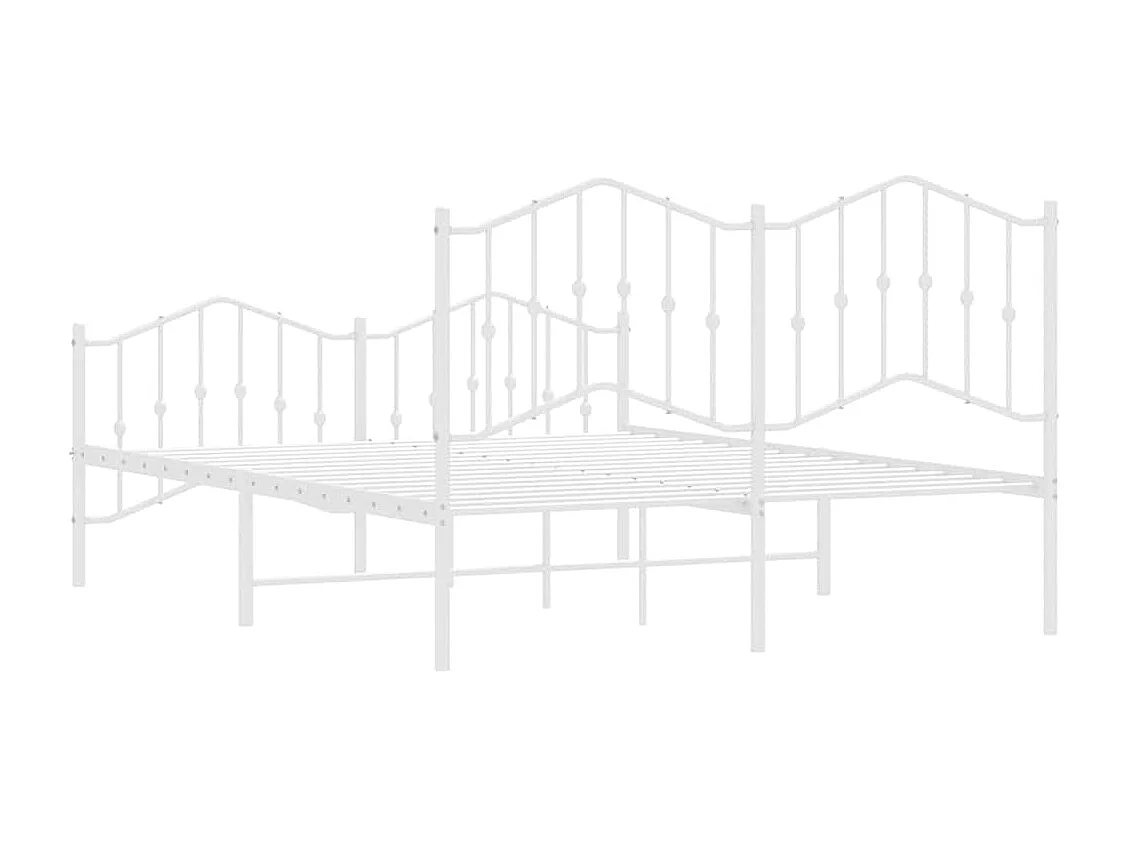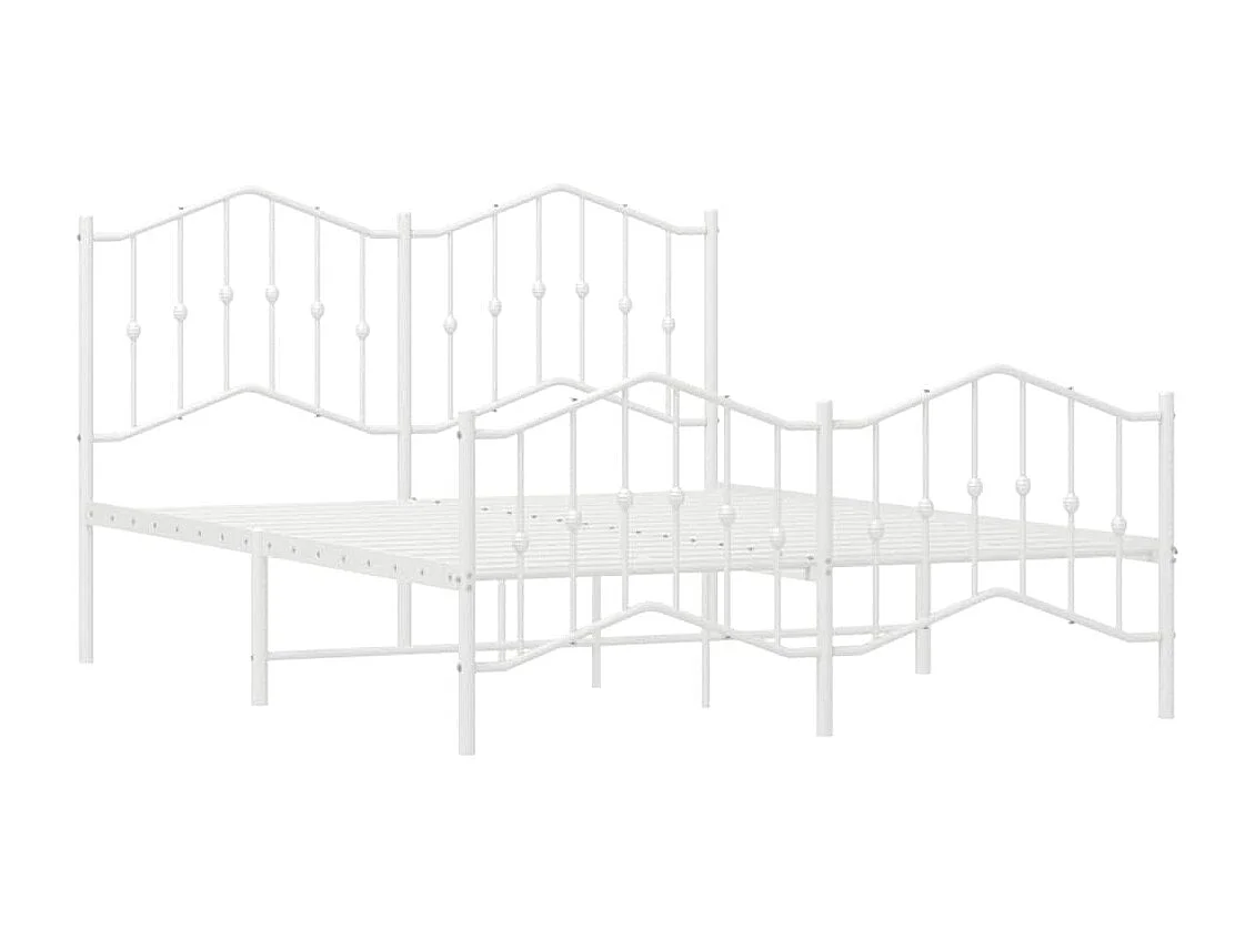 Cadre de lit métal sans matelas et pied de lit blanc 137x190 cm