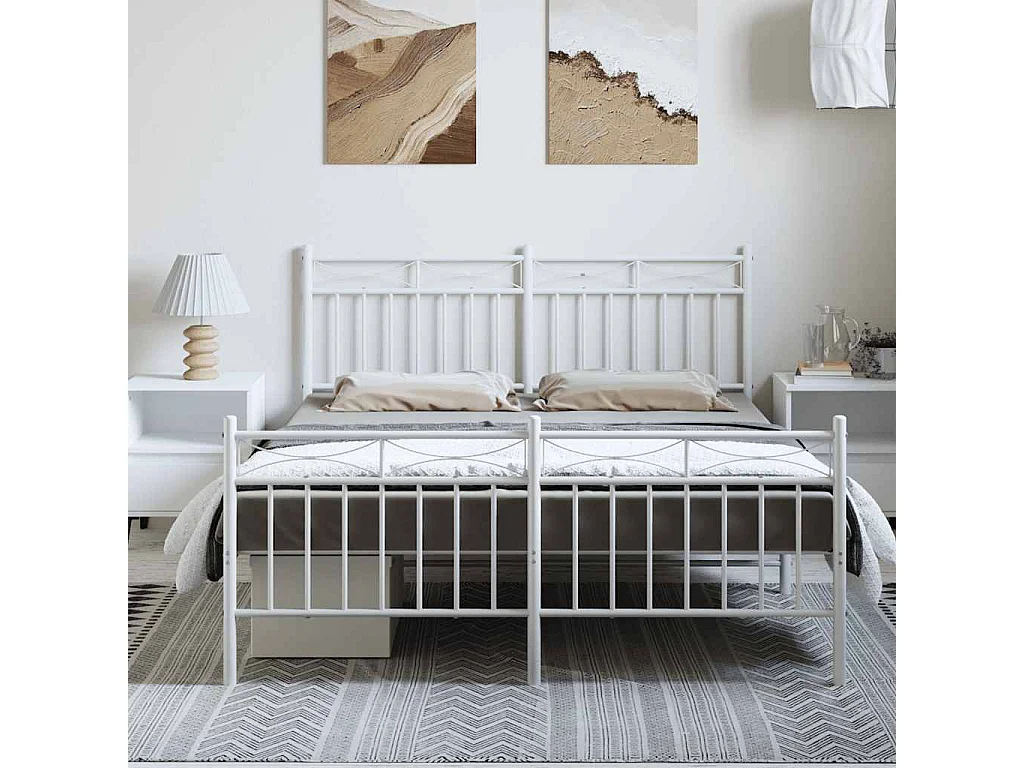 Lit double | Lit adulte | Cadre de lit métal et pied de lit blanc 137x190 cm
