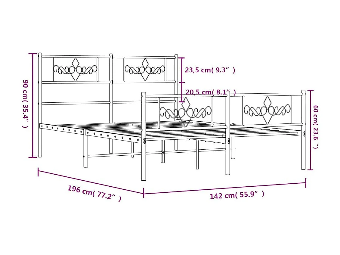 Lit double | Lit adulte | Cadre de lit métal et pied de lit blanc 137x190 cm