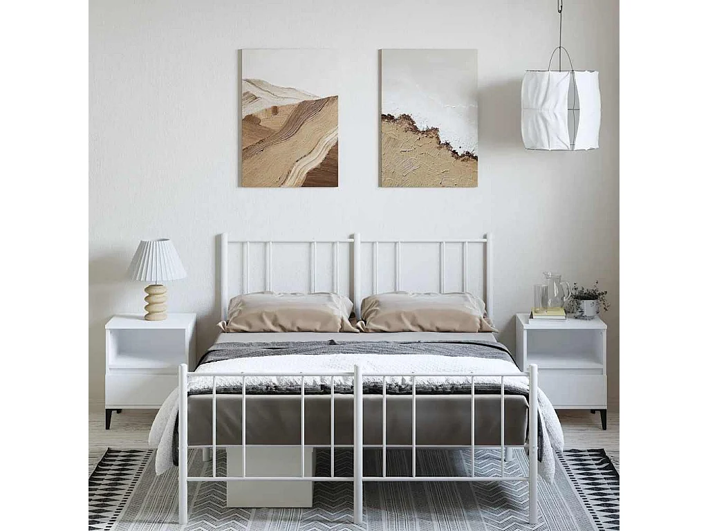 Cadre de lit métal sans matelas et pied de lit blanc 137x190 cm