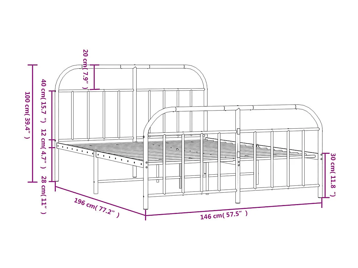 Lit double | Lit adulte | Cadre de lit métal et pied de lit blanc 140x190 cm