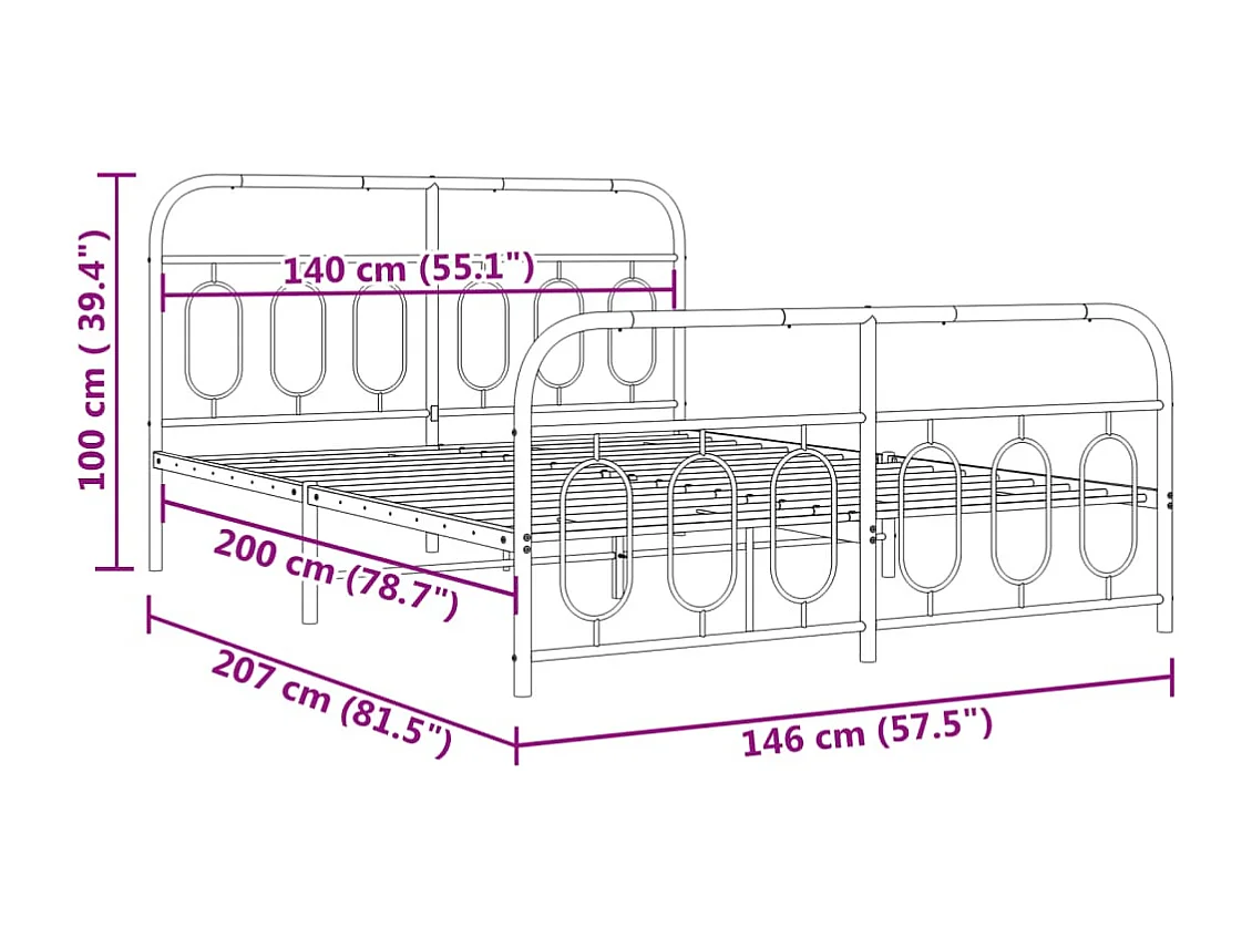 Lit double | Lit adulte | Cadre de lit métal et pied de lit blanc 140x200 cm