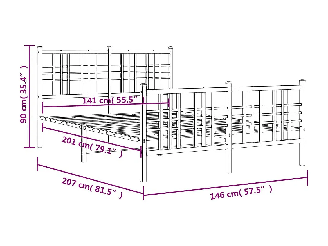 Lit double | Lit adulte | Cadre de lit métal blanc 140x200 cm