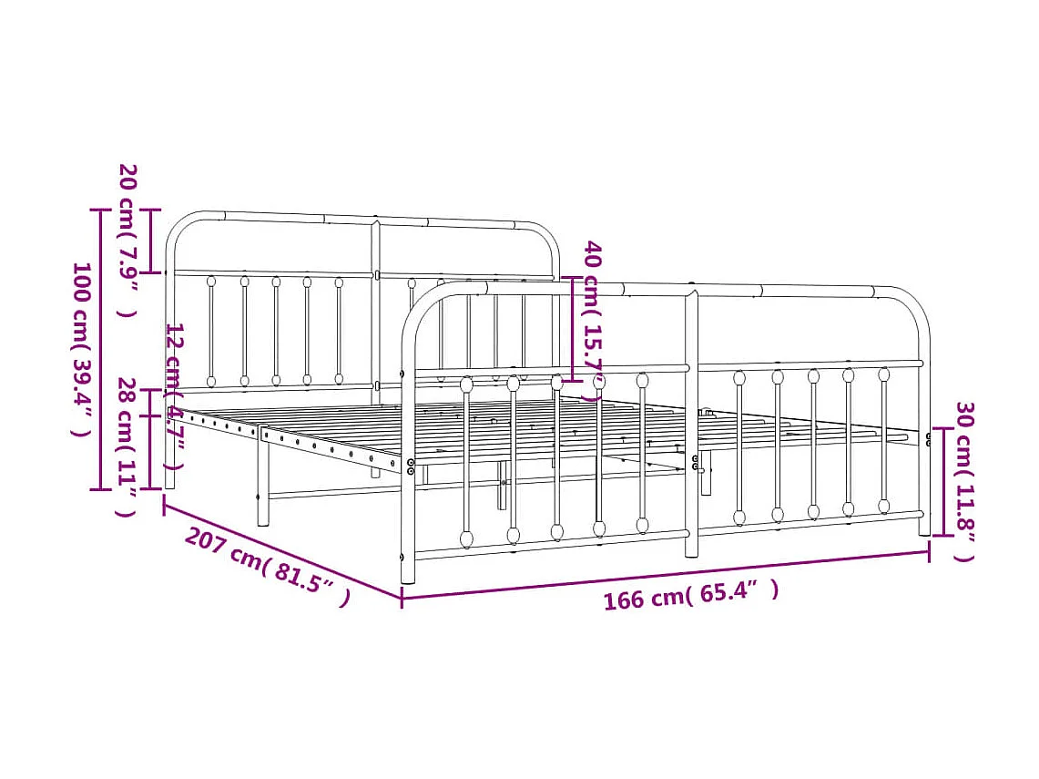 Lit double | Lit adulte | Cadre de lit métal et pied de lit blanc 160x200 cm