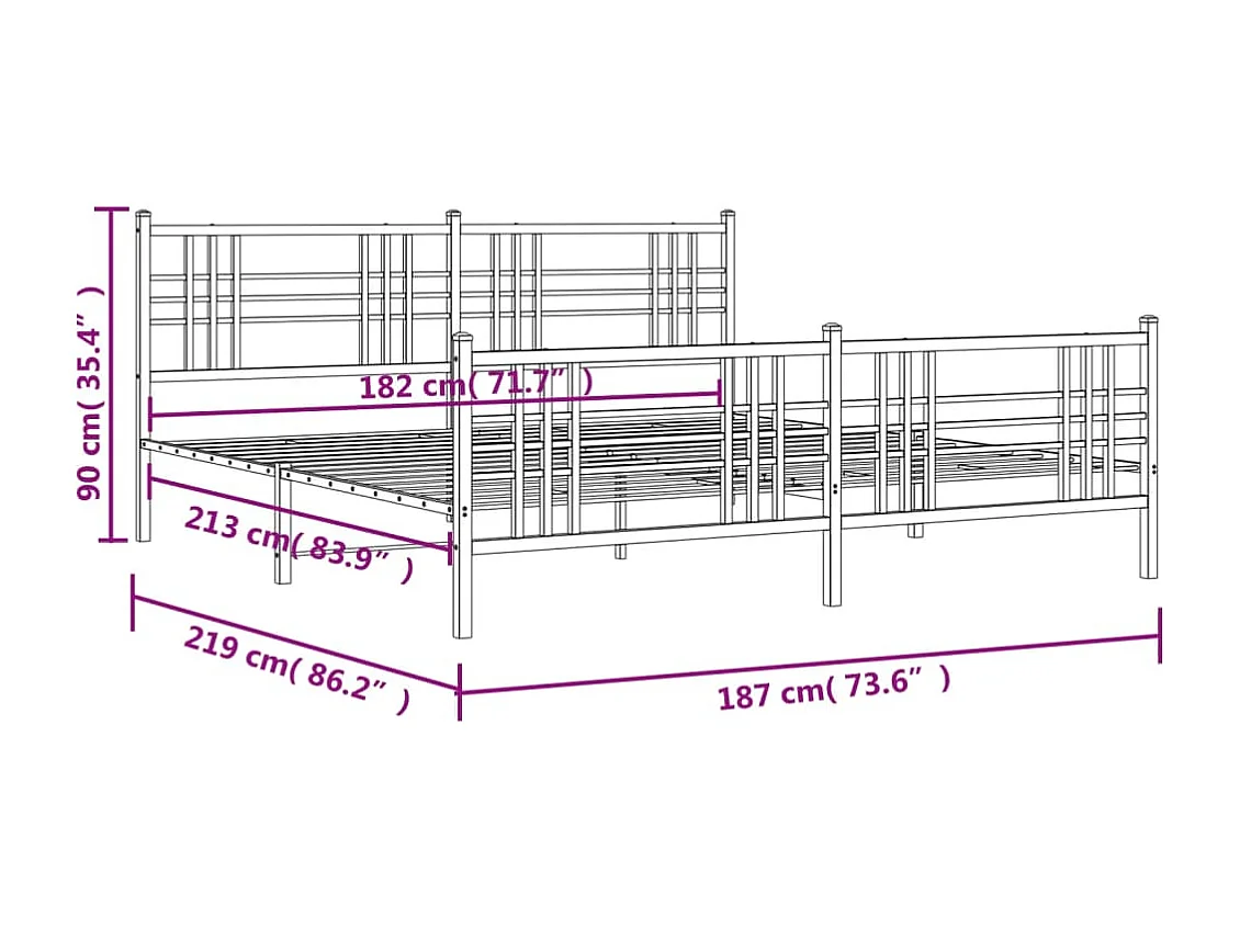 Cadre de lit métal avec tête de lit-pied de lit blanc 183x213