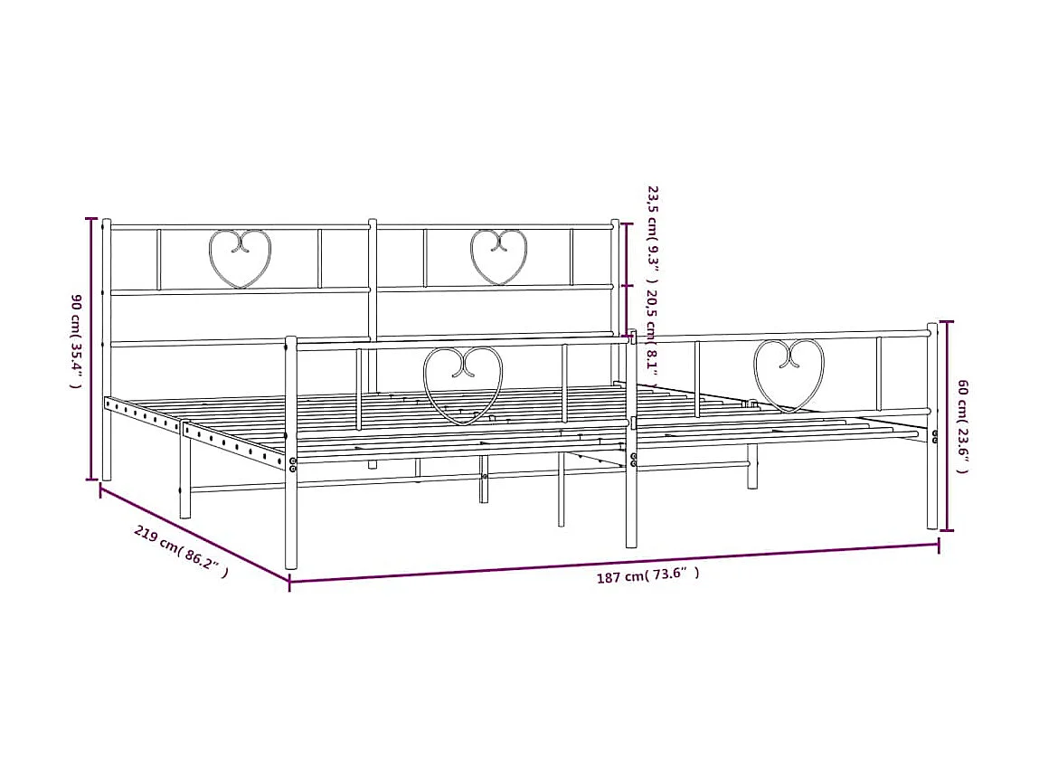 Lit double | Lit adulte | Cadre de lit métal et pied de lit blanc 183x213 cm